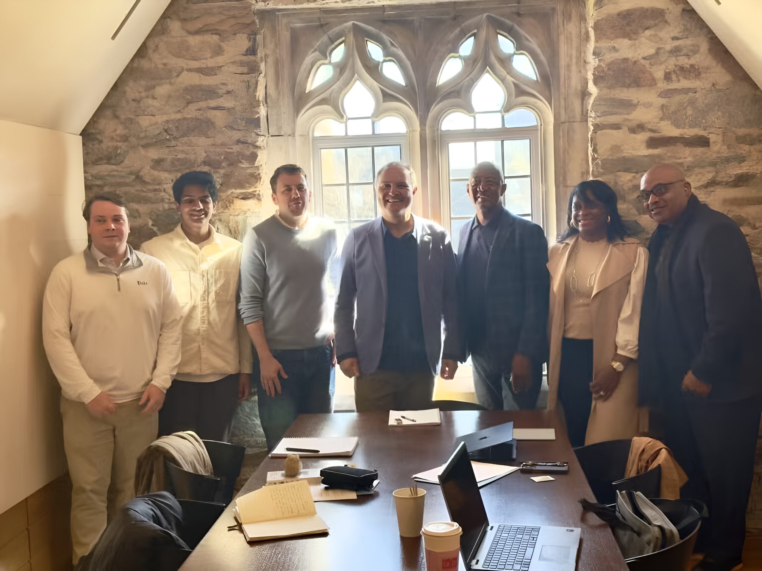 Faculty members and graduate students from Duke University’s Cybersecurity Master of Engineering program recently met with Stanford Oliver, CEO of DigiFlight/Camelot Secure, along with members of the company’s executive team, to kick off a joint effort focused on the convergence of artificial intelligence and cybersecurity.